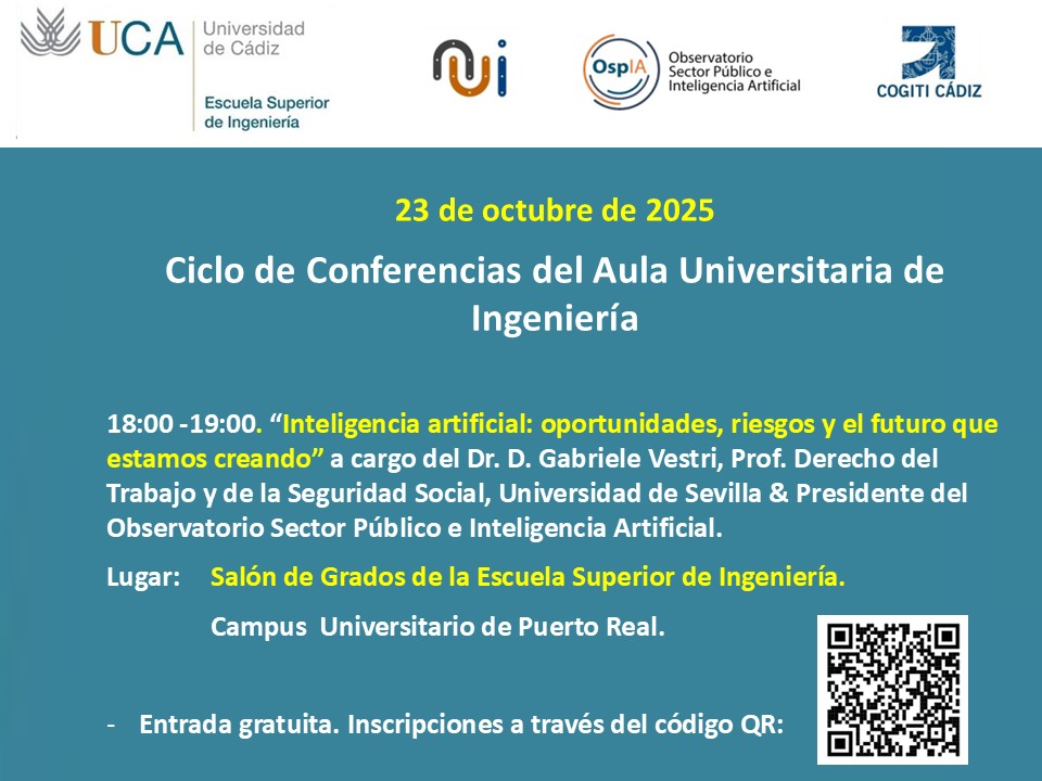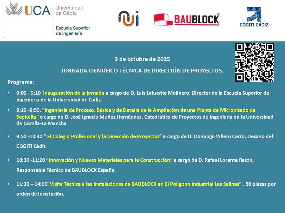 - 10-octubre-2022. Convocatoria de actividad científico-técnica. Seminario “La Gestión Sostenible de Proyectos: Huella de Carbono y otros indicadores de sostenibilidad”. Lugar: Salón de Actos de la Escuela Superior de Ingeniería. Fecha: 21-octubre de 09:30 a 13:00. Inscripción gratuita en https://forms.gle/mHuxH2qD4A97cKZ16